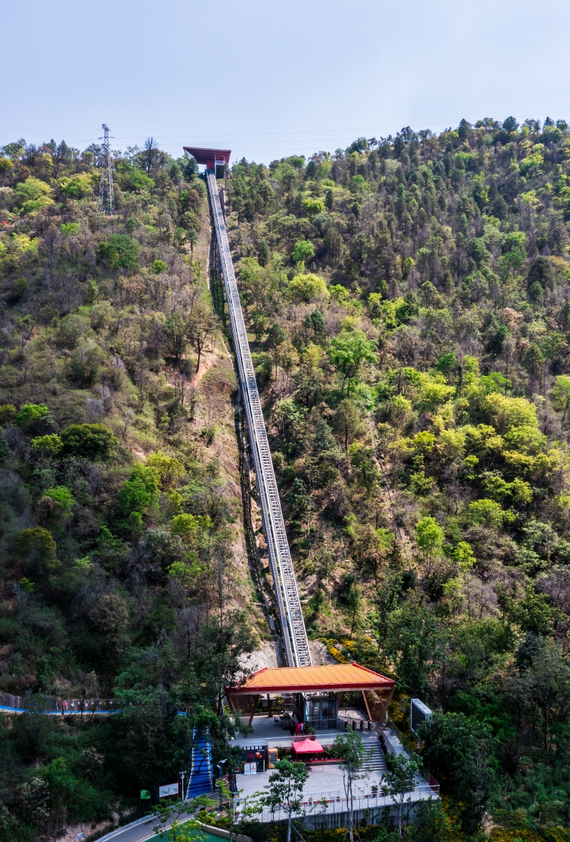 东华山山地体育公园是城建交通集团倾力打造的全市首个集健身、休闲、娱乐、观光、文化体验和网红打卡于一体的集结地,已成为热门网红打卡景点。观光电梯——便捷登高揽胜位于东华山山地体育公园内,规模居全国第二,电梯高差约156米,斜长约294米,轿厢每次能载26人,2分半左右可从山脚到山顶,带来城市高差全景式观感体验。登上山,能尽赏花城美景,感受其江山之雄、人文之韵、自然之美。运行时段:上午9:00—12:30、下午15:30—晚上21:30。