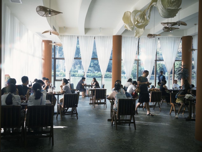 观湖咖啡厅——沉醉于江边的香甜观湖咖啡厅坐落于银江湖公园的银江沙滩,坐拥绝佳的湖景视野。店内主打简餐、甜品与冷饮,简餐丰富多样,能充分满足游客不同的口味偏好;甜品和冷饮品质卓越,精致甜品搭配香浓咖啡或清爽冷饮,令人唇齿留香。游客在沙滩尽情游玩后,步入咖啡厅,一边品尝美食,一边沉醉于银江湖的粼粼波光,轻拂的微风相伴,悠然享受惬意的湖畔时光。